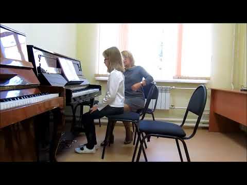 Ученица проигрывает такты: 2–4, 6,22,23,31,38,40–43 — правой рукой и 67–74 такты левой рукой соблюдая правильную аппликатуру. (Проверка домашнего задания — проучить в этих тактах точные пальцы).